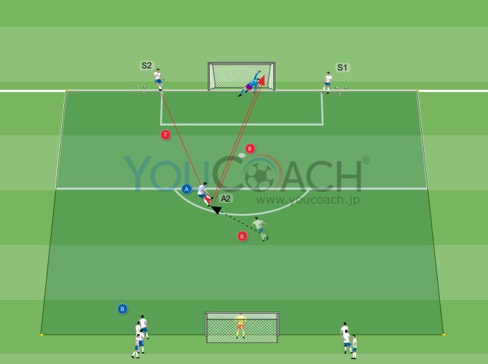 - S1とS2は、味方がシュートしやすい精度の高いパスを送ること。