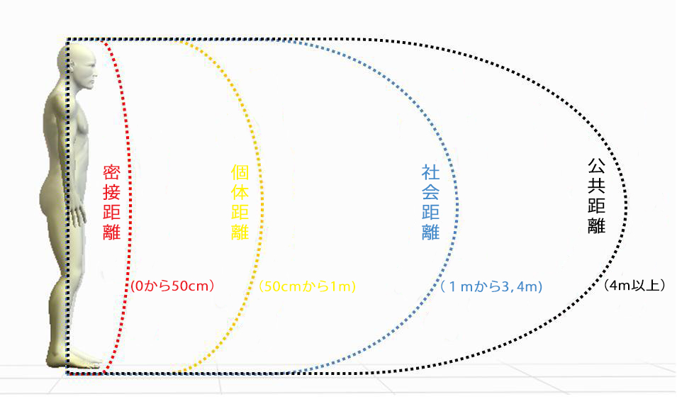 - 密接:フィジカルコンタクト寸前の距離(0-50cm)