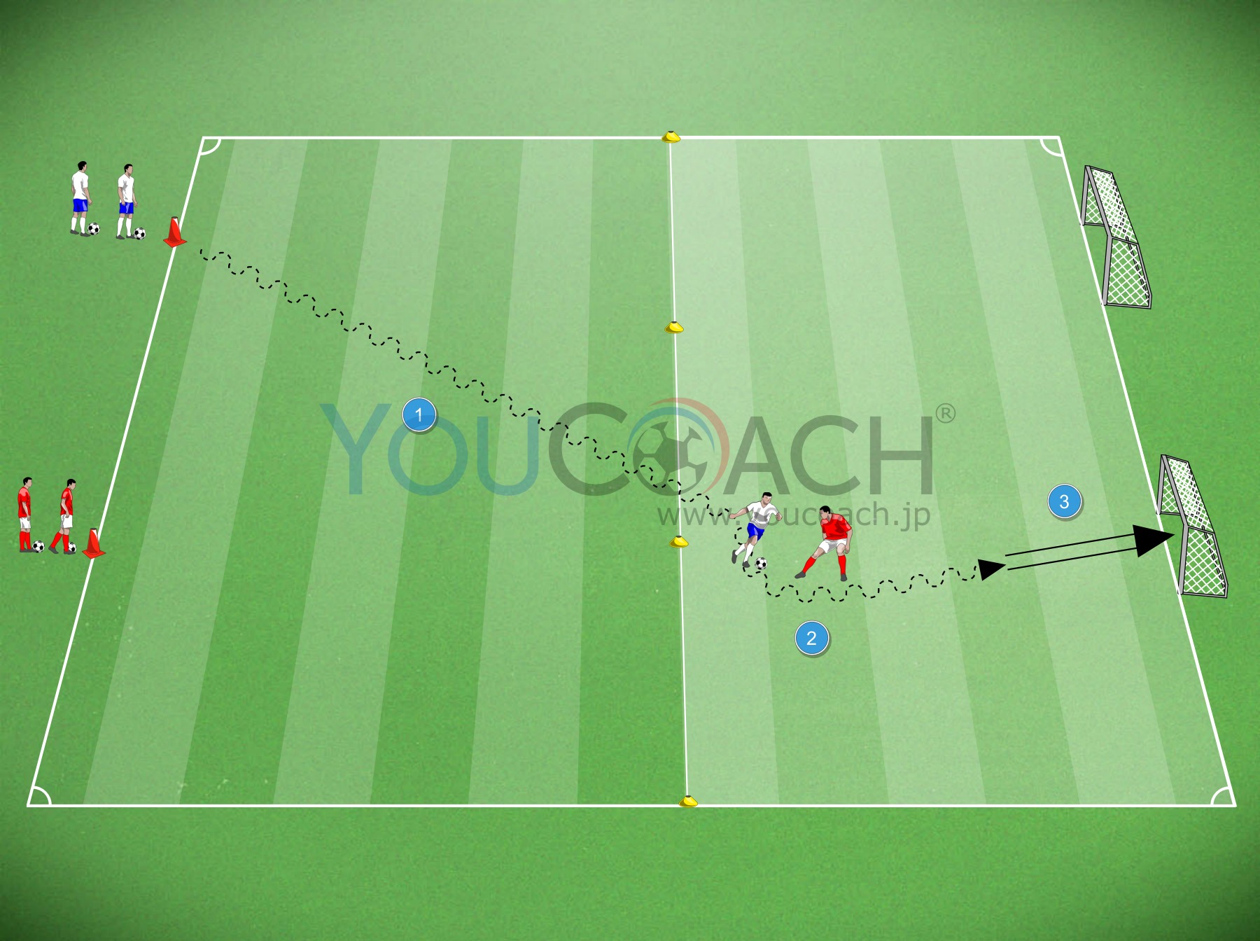 1対1 + ミニゴール2つ |