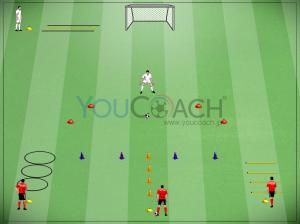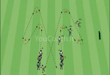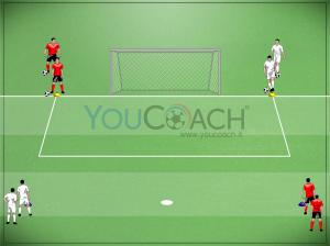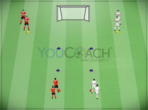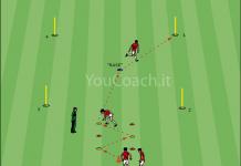 Rondo 6 contro 3 con rotazioni dentro e fuori Situazione di superiorità numerica nel possesso per facilitare la creazione di linee di passaggio attraverso il "gioco dentro, vado fuori" e il "gioco fuori, vado dentro"