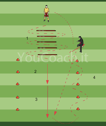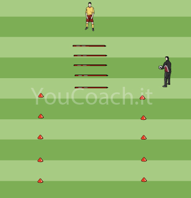- Doppio passaggio con l'allenatore e veloci passi singoli tra i pali