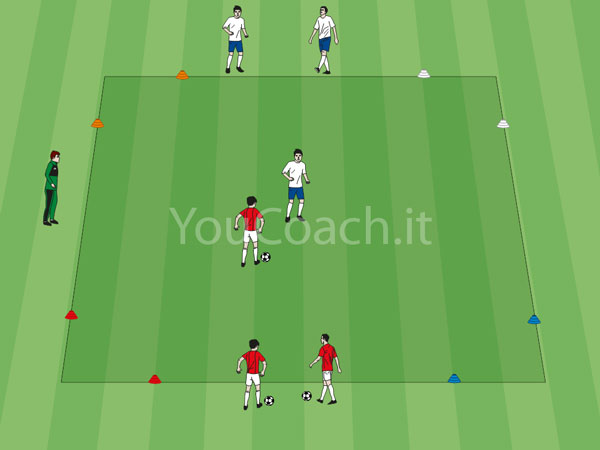 1 contro 1 - Esercitazione utile ad allenare le situazione di 1 contro 1 e il controllo orientato |