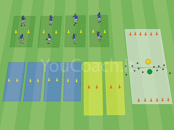 Guida della palla - Esercitazione gioco, per il settore giovanile, utile ad allenare vari tecniche di conduzione di palla e lo scatto veloce |