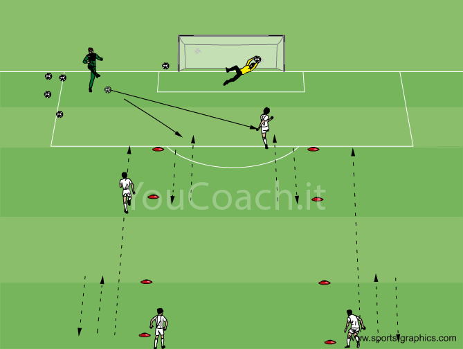 1 contro 1 - Esercitazione che permette di allenare la resistenza fisica e la capacità del giocatore di posizionarsi nello spazio libero |