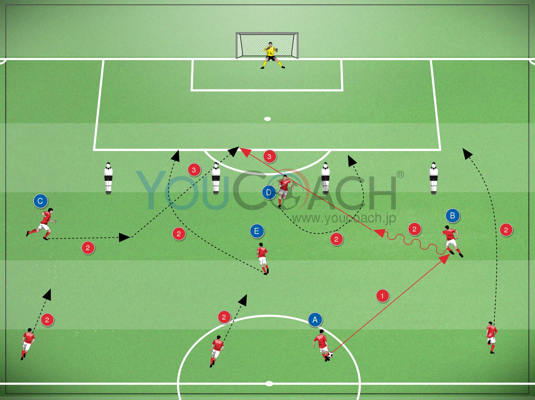 Penetrazione - Allenare i tempi di inserimento affrontando una ipotetica linea a 4 difensiva per moduli a 3 punte |