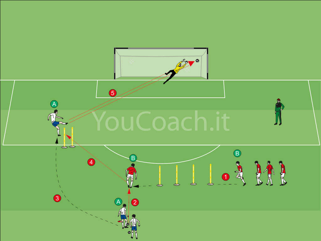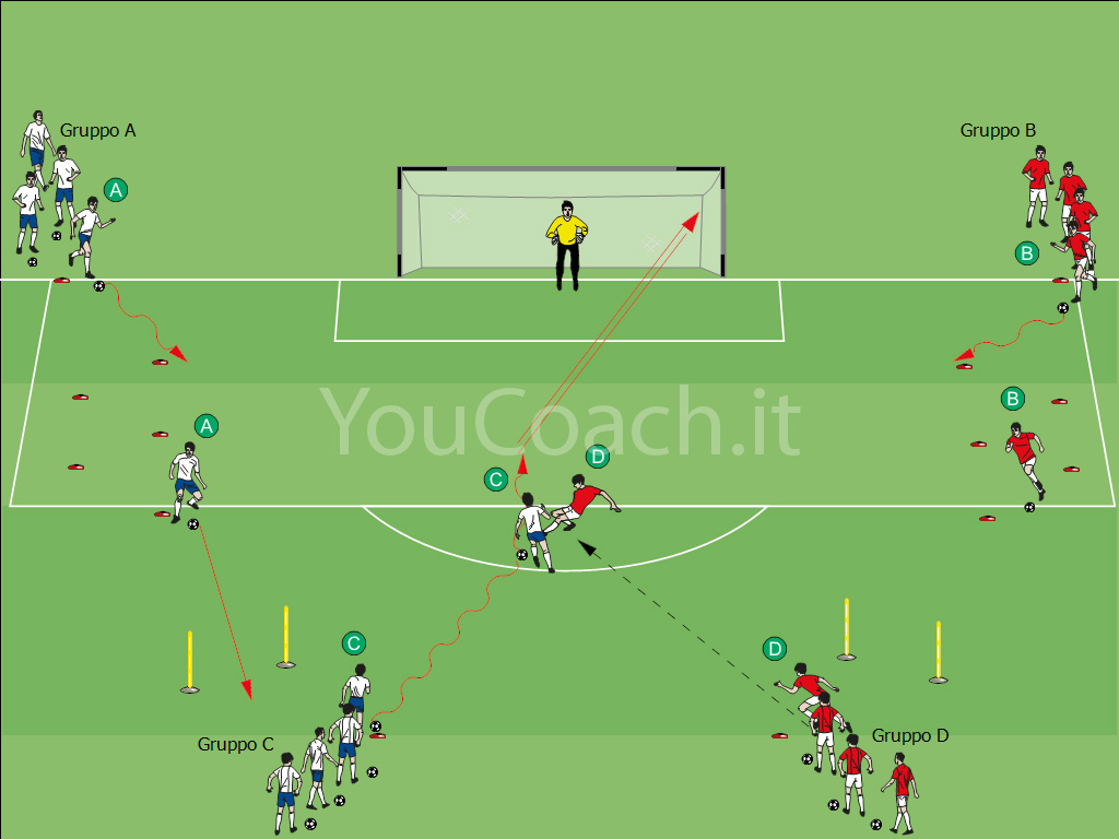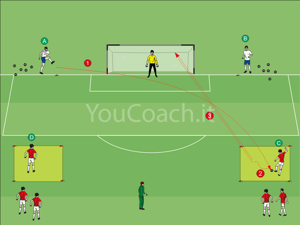 Passaggio - Esercitazione utile ad allenare passaggio e tiro in porta |