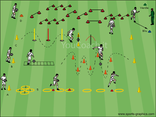 Capacità coordinative generali - Con questo circuito é possibile allenare la tecnica di base e la coordinazione nel calcio in diverse categorie |