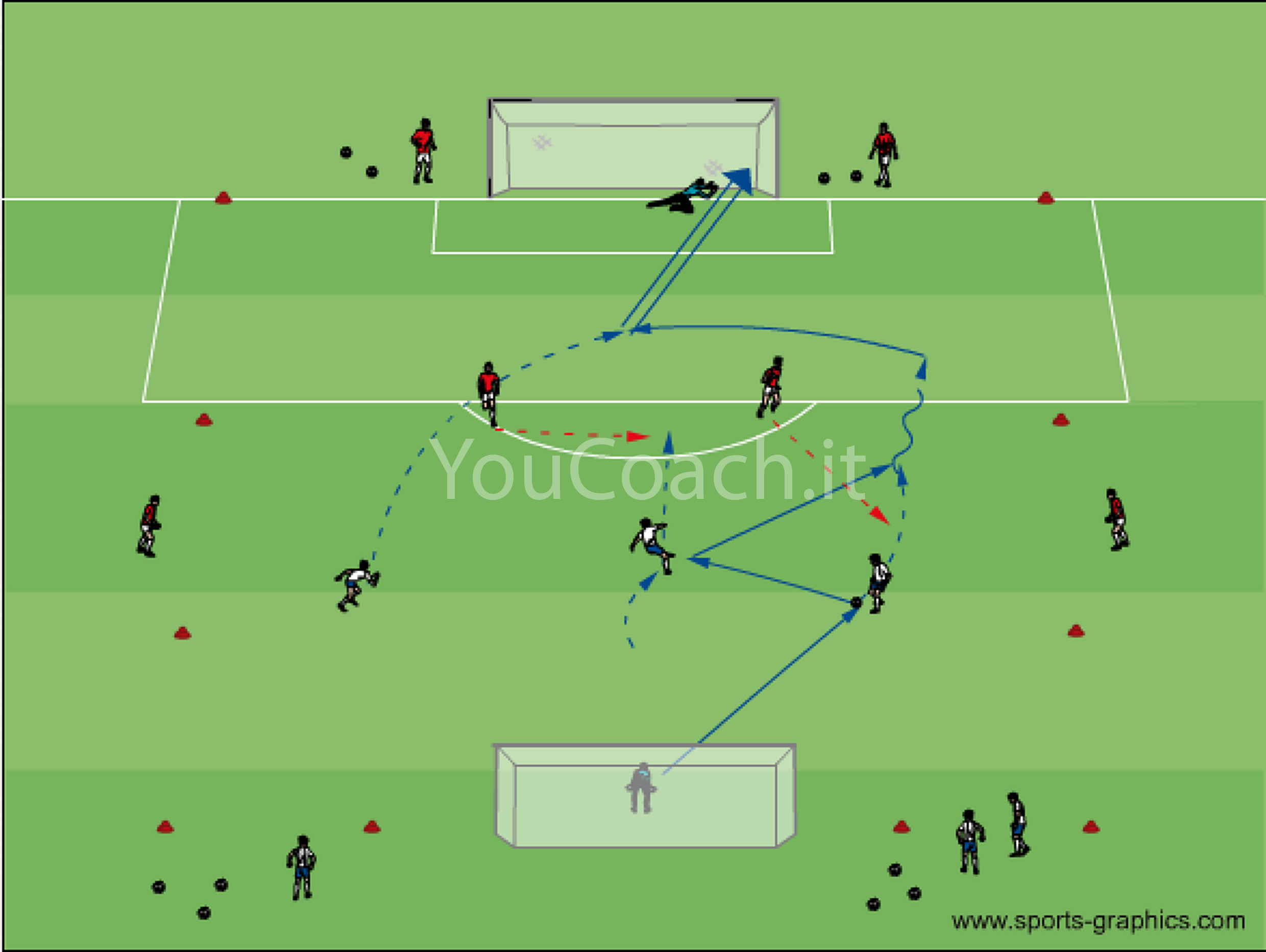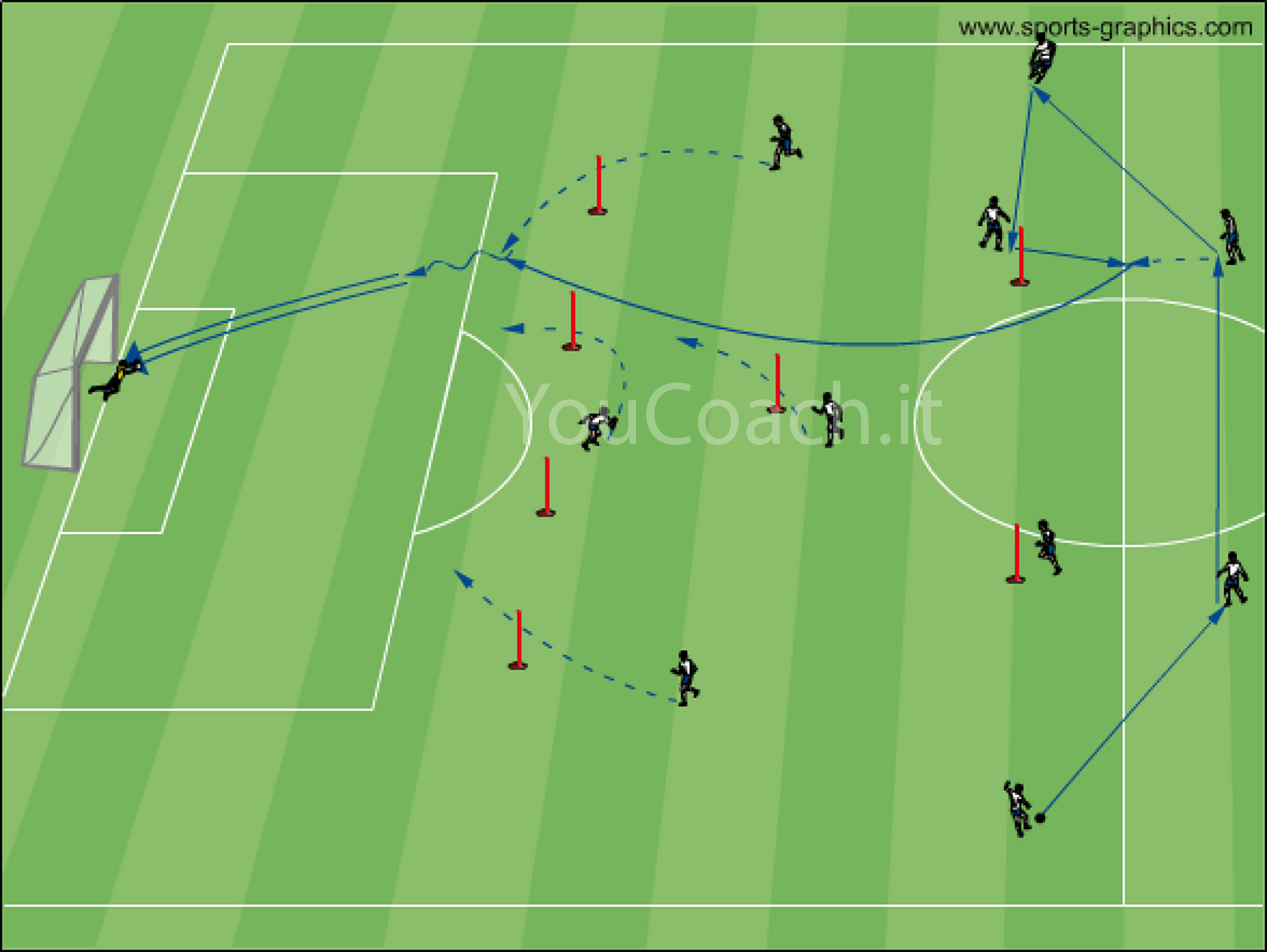 Penetrazione - Creare spazio alle spalle dei difensori e attaccare la profondità con dei movimenti a mezzaluna, esercizio per i sistemi di gioco 4-2-3-1 e 4-3-3 |