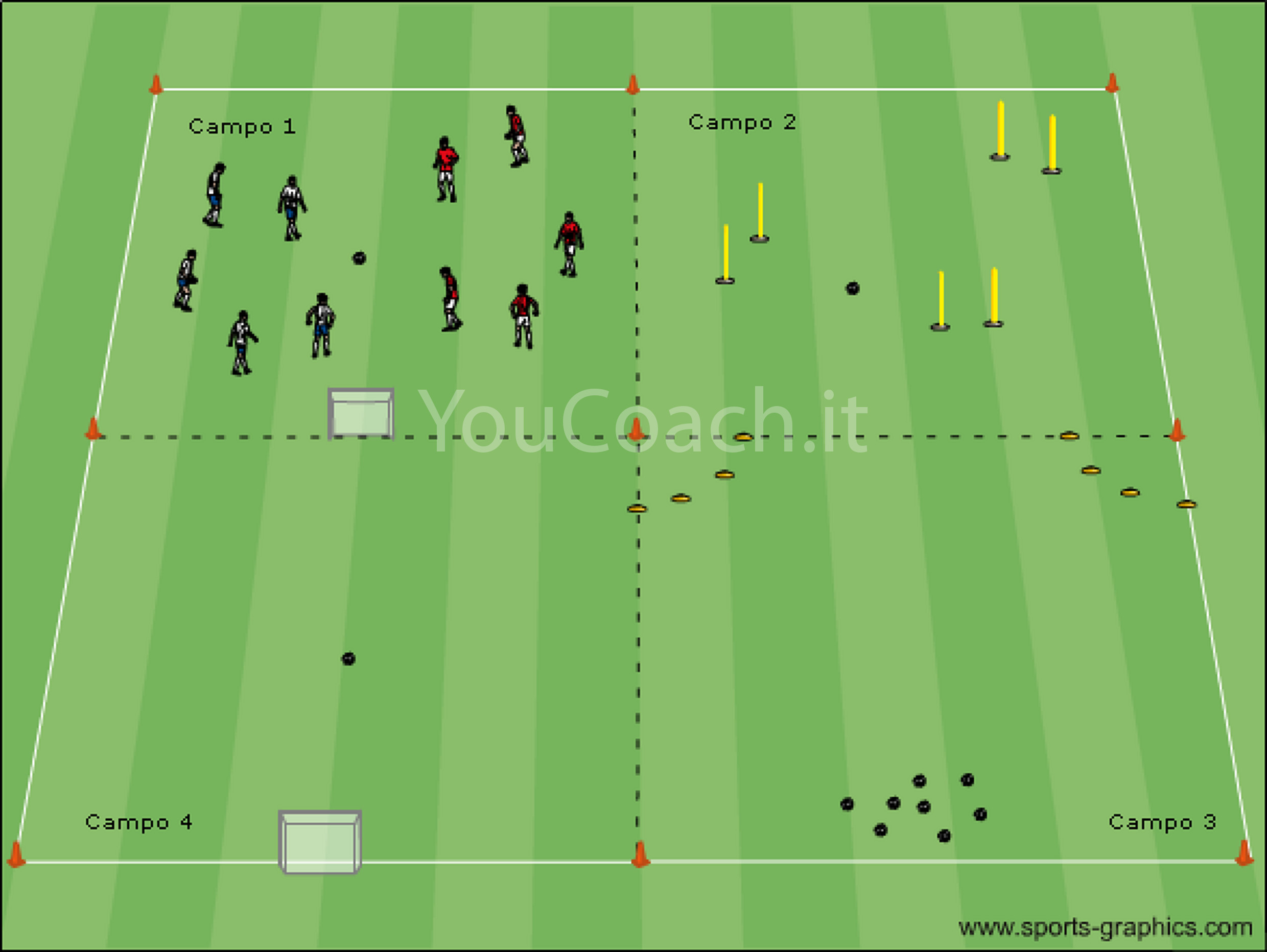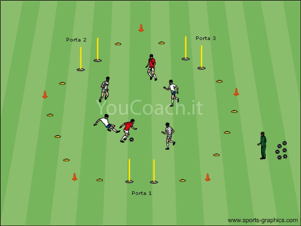 Possesso palla - Massima intensità e quattro porticine per un esercizio dal ritmo frenetico |