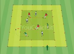 Possesso palla e ricerca dello spazio - 3 contro 3 + 2 jolly