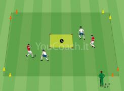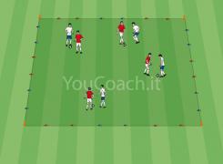 7 Febbraio, 2019Possesso palla - Partita a tema 5 contro 5 con compagni sponda che allena intensità e velocità di esecuzione, la finalizzazione ed il pressing -