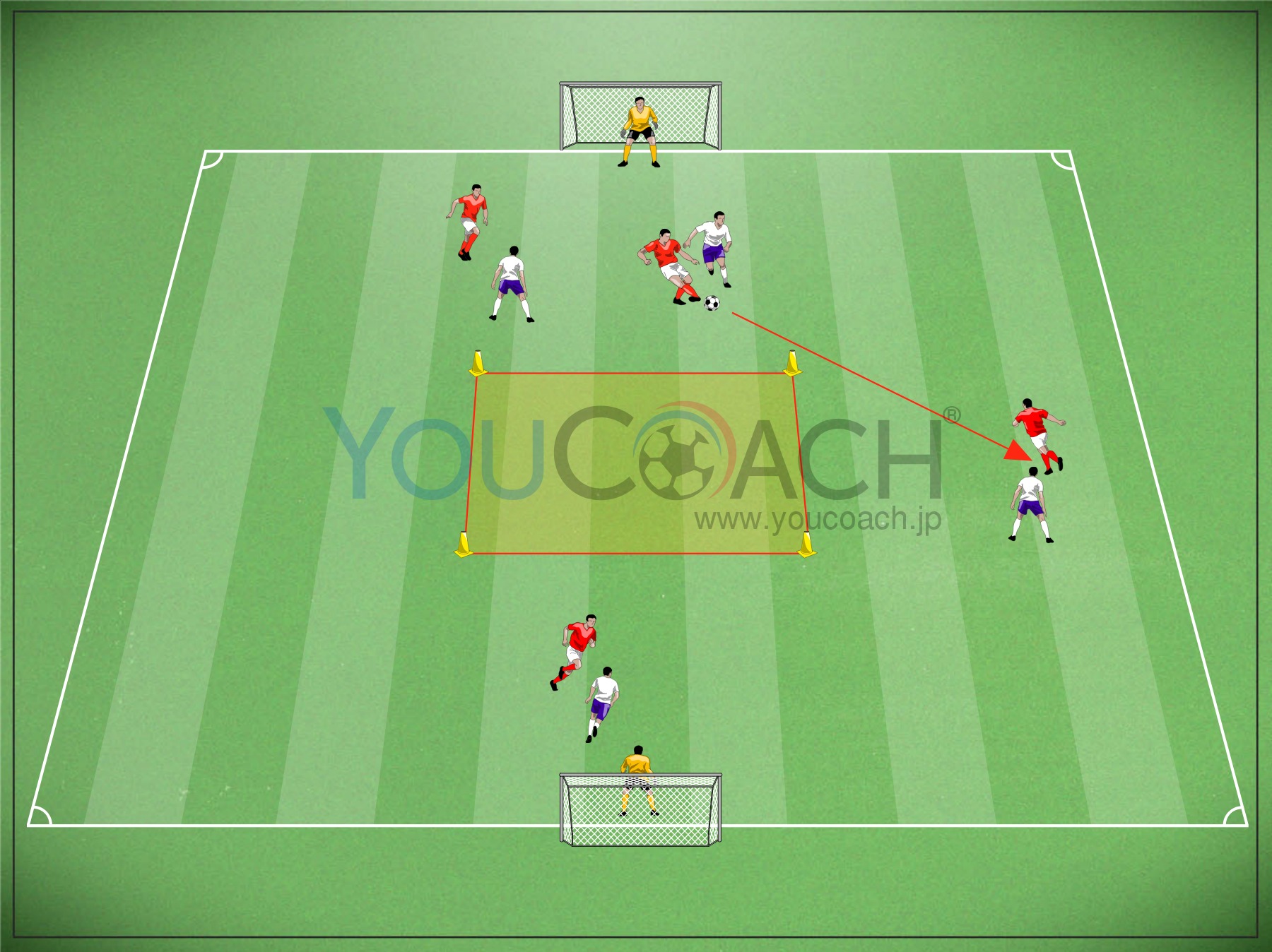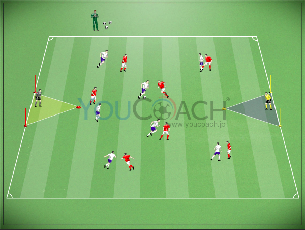 マークを外す - CFのマークを外す動きとエリア内の3人目(MF)の動き出しを強化するスモール サイド ゲーム |