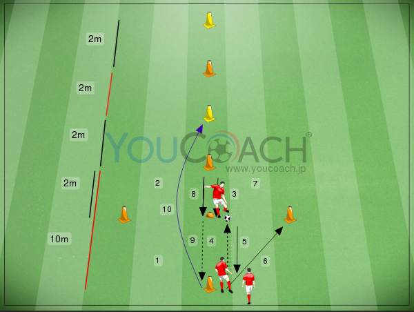 枠内シュート - スピード、アジリティ、そしてボールを使用したプレー、計3つの要素を1度に凝縮し、高いインテンシティの中で行うトレーニングです |