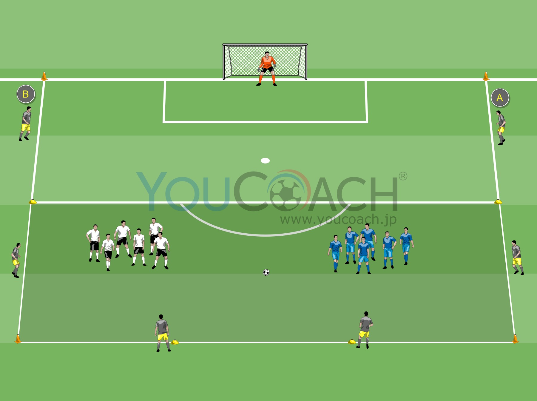 3対2 - 通常サイズのゴールを使用してフィニッシュスキルを強化 |