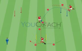 ボールポゼッション - マークにつかれた状態でのボールポゼッション、プレイヤーは固定ペアにして行います。 -
