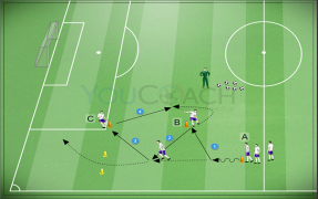 枠内シュート - 複数のコースの中にシュートとクロスを取り入れたサーキットトレーニング。