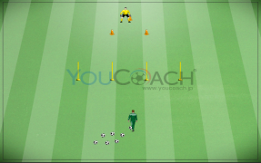 枠内シュート - スピード、アジリティ、そしてボールを使用したプレー、計3つの要素を1度に凝縮し、高いインテンシティの中で行うトレーニングです -
