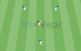 2ライン上での3対2 - 縦への展開とトランジションの能力を伸ばすと共に、有酸素性ポテンシャル(潜在能力)を高めます。