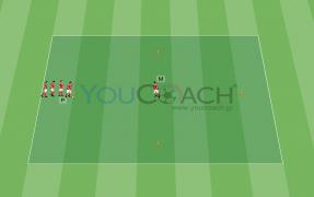 2ライン上での3対2 - 縦への展開とトランジションの能力を伸ばすと共に、有酸素性ポテンシャル(潜在能力)を高めます。 -