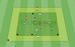 1対1 - 1対1がテーマのプレーエリアからポゼッションへ展開していく試合形式トレーニングです