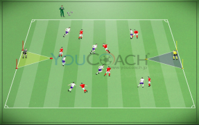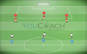 マークを外す - CFのマークを外す動きとエリア内の3人目(MF)の動き出しを強化するスモール サイド ゲーム