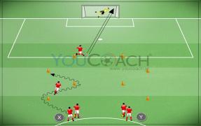 2対2 - オフェンス及びディフェンスのフェーズ、フィニッシュ、パス精度を強化できる2対2のオーソドックスなトレーニング