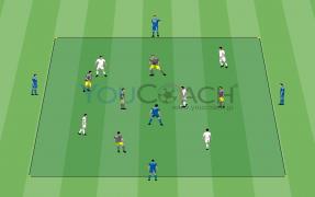 ボールポゼッション - フリーマン経由のボールポゼッションからのフィニッシュまでをミニサイズのピッチで行います。 -
