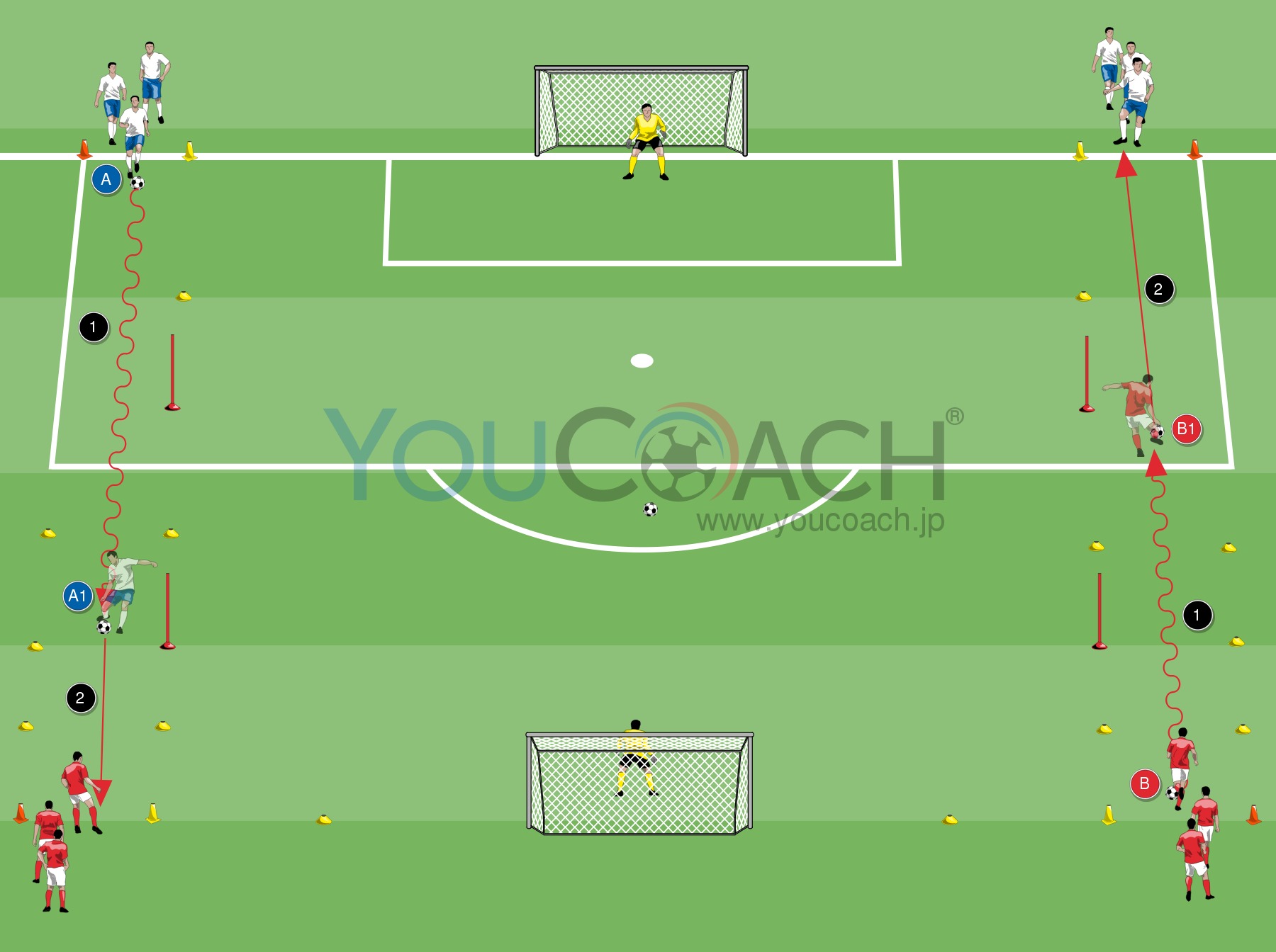 7 1月, 2020枠内シュート - 1対1のシチュエーションを通じてシュートスキル、決断力の早さを高めるトレーニングです -