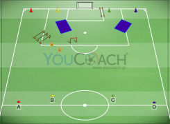 スモールサイドゲーム:4対4-相手を抜くドリブルとミニグリッドへのゴール