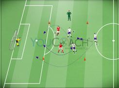 5 11月, 20183対1 - オフェンス1名、ディフェンス2名、GK1名の状況下で、オフェンスの素早いフィニッシュと、ディフェンス側の素早いリスタートを鍛えるトレーニングメニュー -