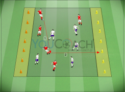30 11月, 2018ボールポゼッション - オフェンス局面、ディフェンス局面、ボールポゼッションそしてパスを磨くために効果的な制限されたスペース内での3対3トレーニング -